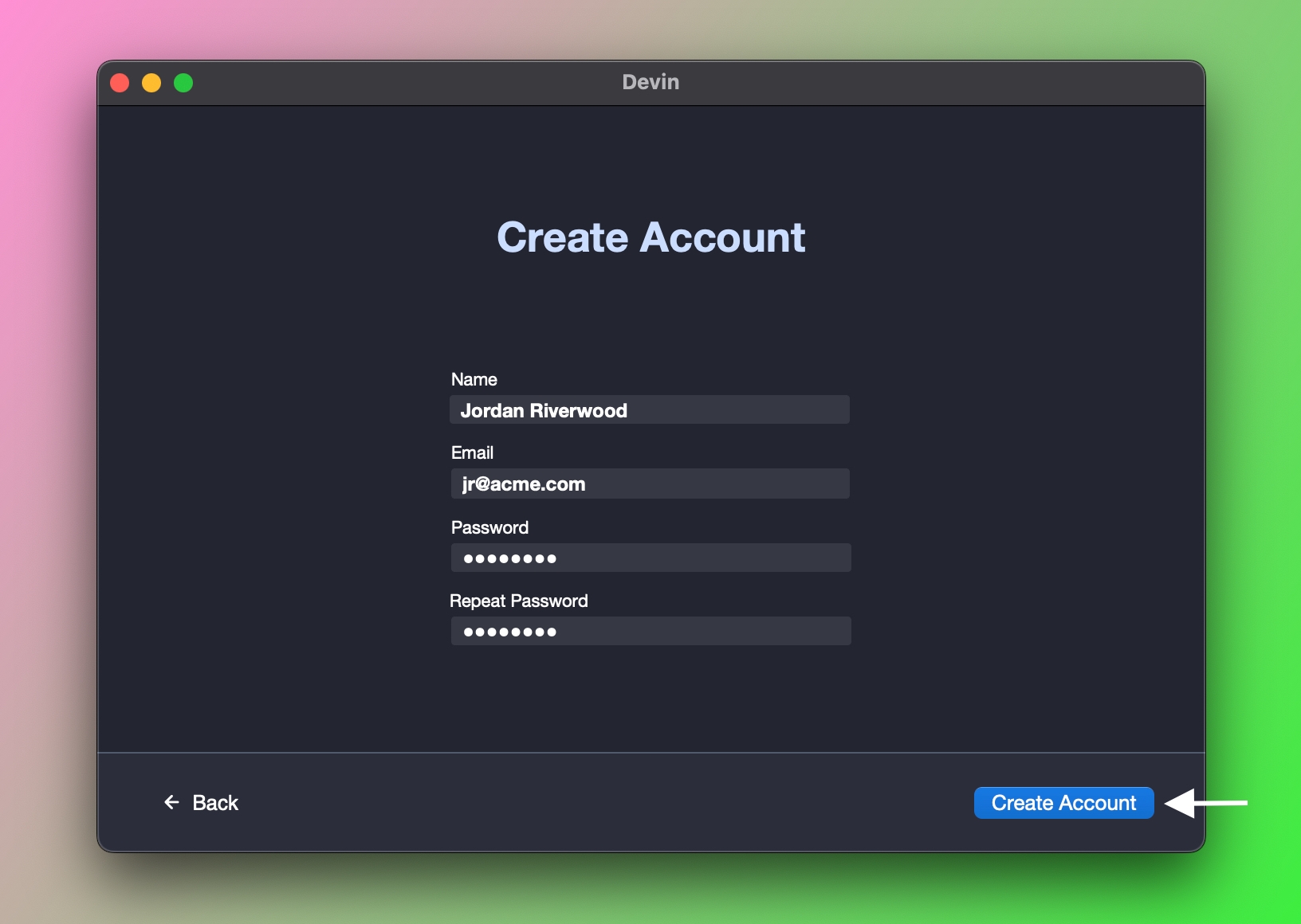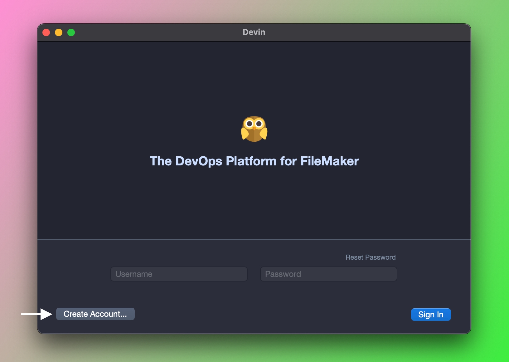 Open the Devin.fmp12 app. If you already have an account, login. If not, click Create Account.
