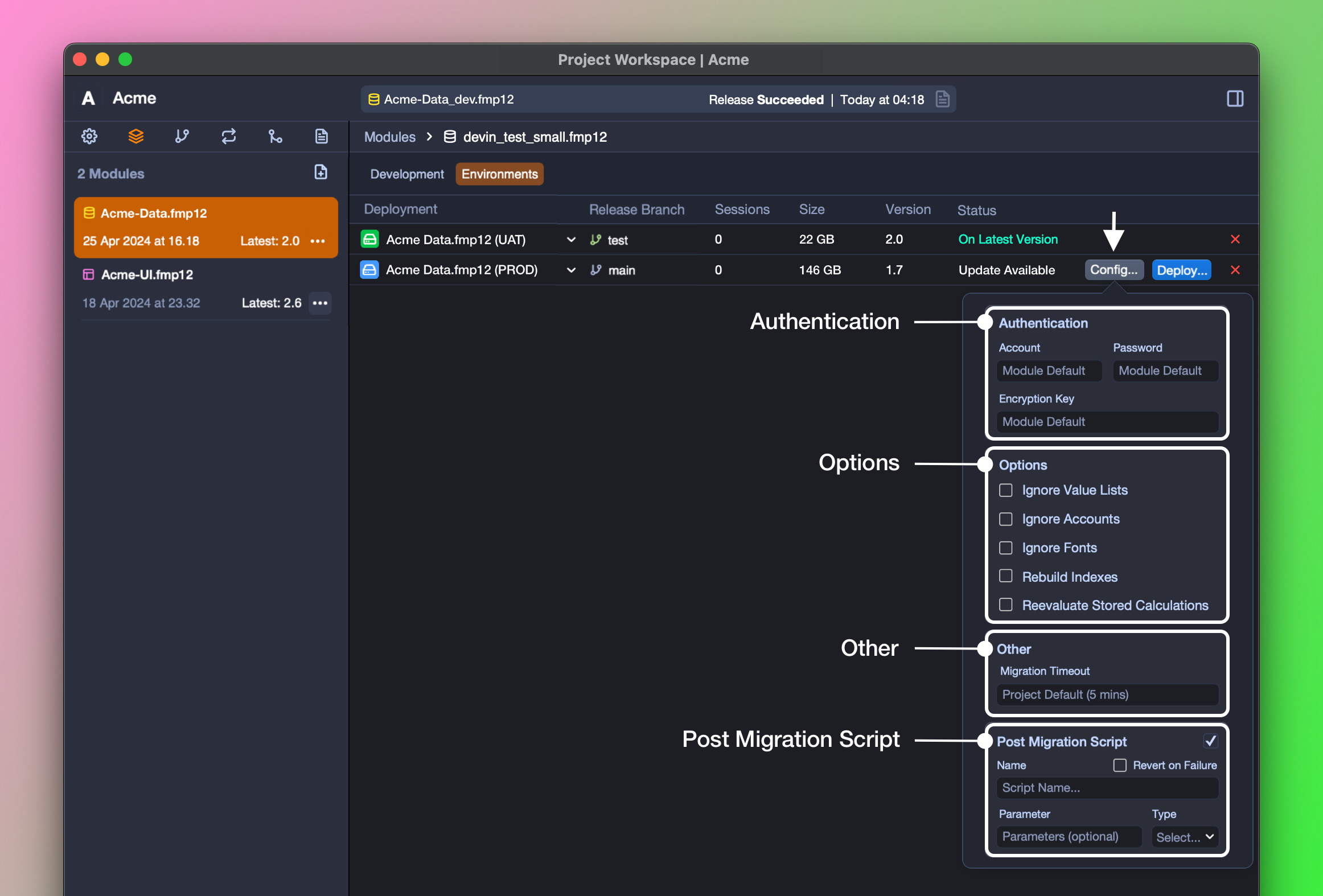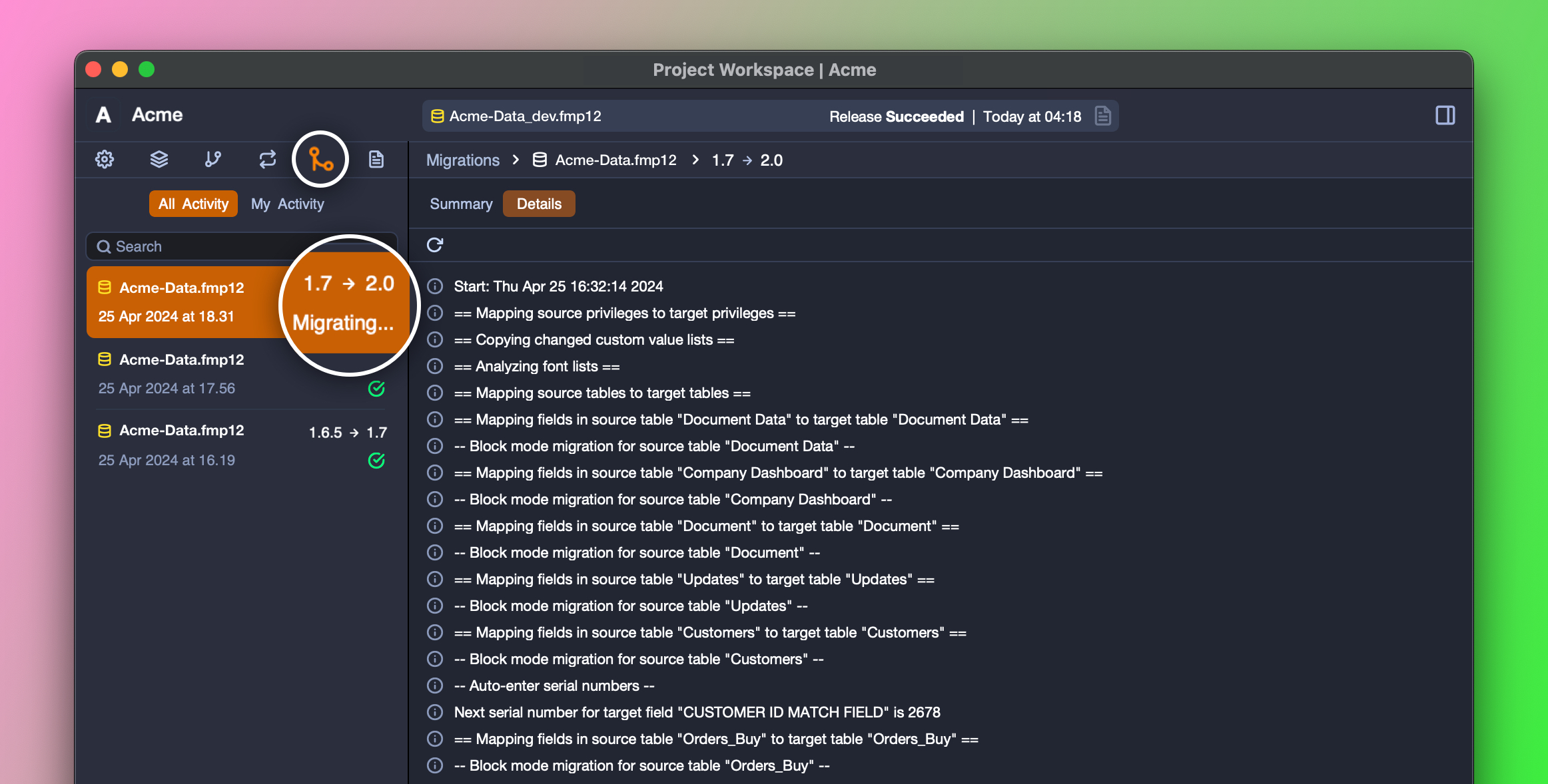 <figure><img src="https://content.gitbook.com/content/yVoWYDKPRZW9z9KzLOvL/blobs/tGEnLynYR7TpuXLLcH0Q/DeployreleaseProgress.jpeg" alt=""><figcaption><p>Monitor Data Migration progress and logs from the Migrations view</p></figcaption></figure>